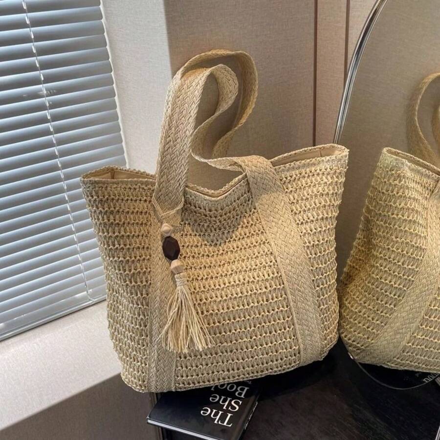 Essencial para o Verão: Bolsa de Ombro Único Tecida à Mão, Versátil e Espaçosa. Leve Tudo o que Precisa com Estilo Natural.