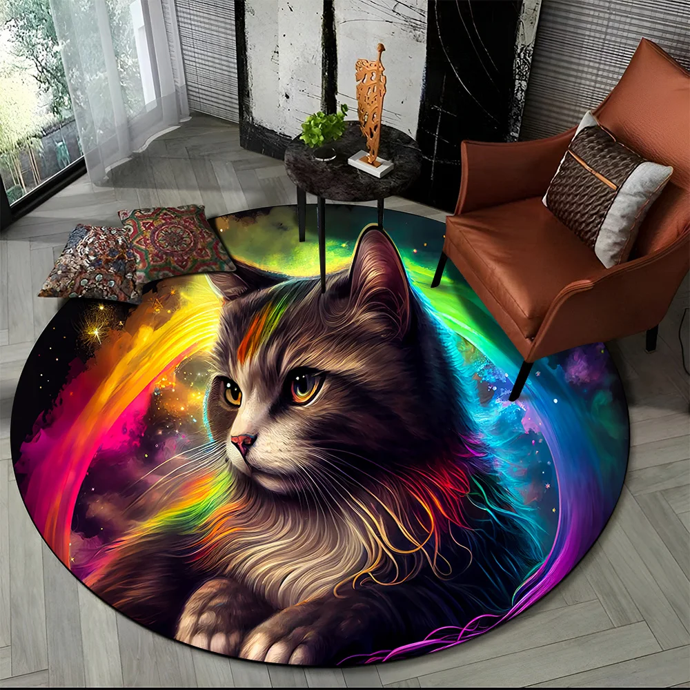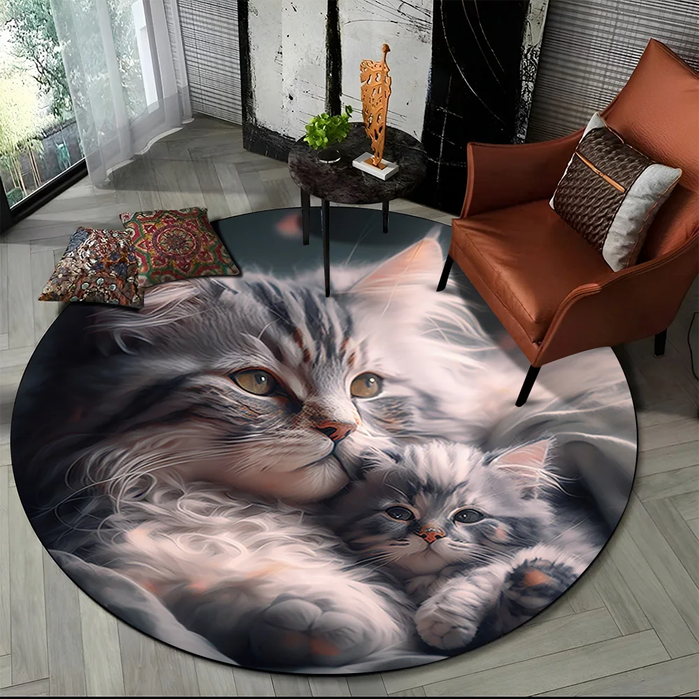 Tapete redondo 3D gato persa, tapete para sala de estar, quarto, decoração de sala de jogos infantil, tapete antiderrapante para animais de estimação, desenho animado de trapo, fofo